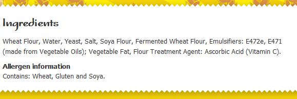 Finally the flour treatment agents can include a broad range of chemicals used to help in the mechanised bread making process and can include bread or dough improvers or conditioners, bleaching agents, oxidising agents, reducing agents or enzymes. In this instance the agent identified is industrial grade ascorbic acid which is a reducing agent that helps with the glutenous properties to form a better loaf.