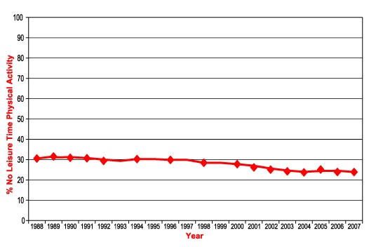 Does this simply mean that we are becoming more sedentary and this is why we are gaining weight? Well in order to make such claims we surely need to back up this with hard data. the following is the US trends identified by the amount of leisure time that is spent involved in physical activity.