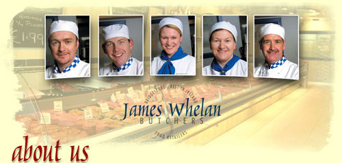 Irish Butchery James Whelan Butchers is fifth generation family craft butcher business involved in farming and retailing in Clonmel. Our background and experience in agricultural processes uniquely gives our craftspeople the expertise to control and develop high standards at each stage of the supply chain from selection to maturation, to end-product refrigeration and presentation. Having our own farm, our own abattoir and our own shop to sell our beef, allows us to give people that essential element of trust that every consumer requires when they buy meat today in our store or order meats online. Our high standards are achieved by constantly assessing and re-assessing every aspect of our business. We do this by listening to our customers and our people.
