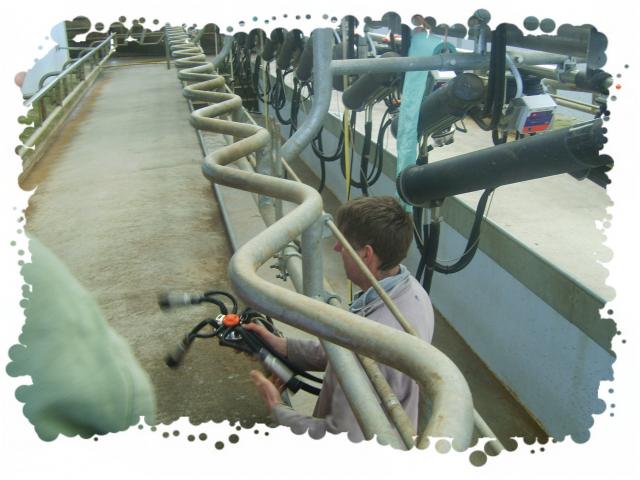 The milking area was spotless and run like clockwork, each cow is marked on the rear so that when they are facing away from the farmer to be milked he can identify each one.